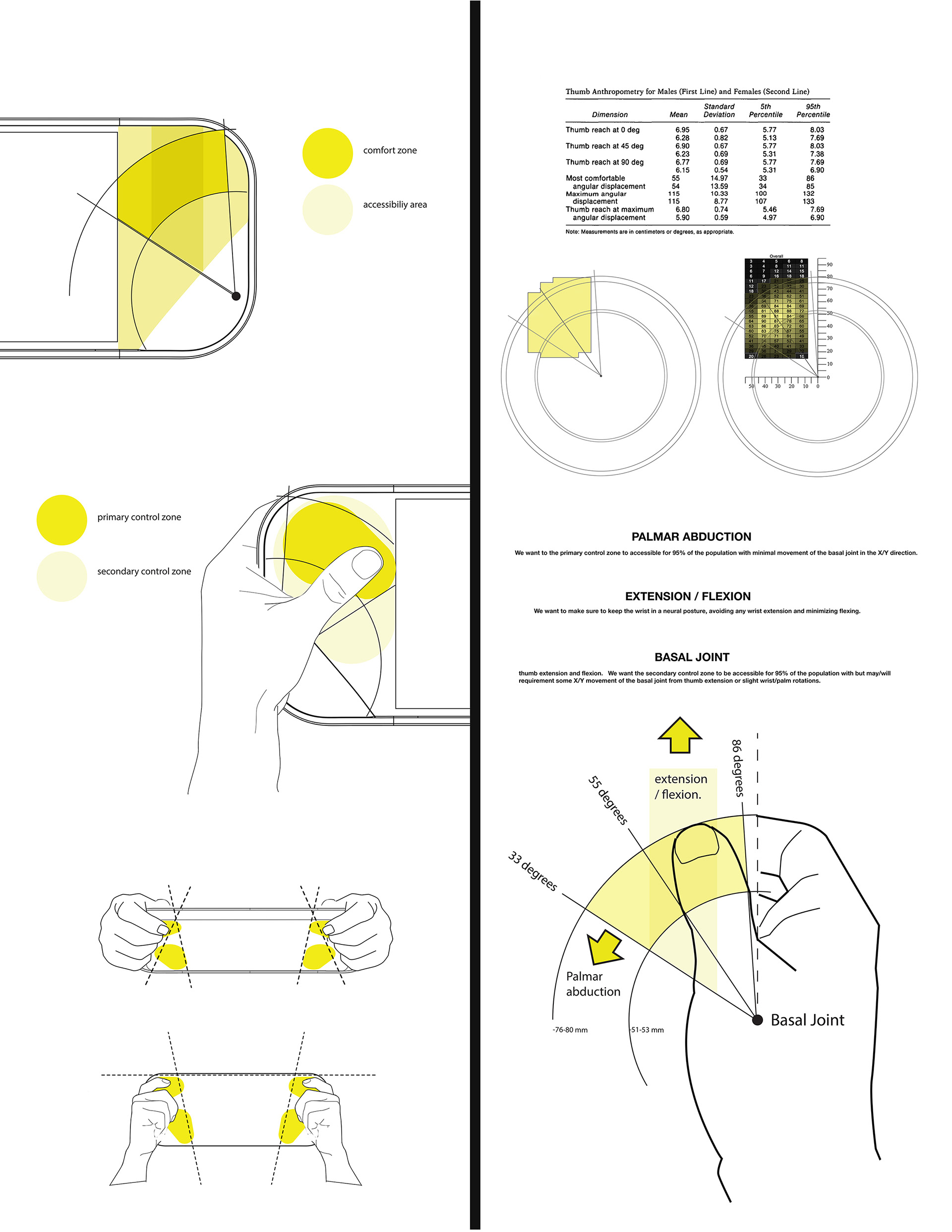 Controls were carefully placed and tested to follow the natural arc and flexion of your thumb from the basal joint. Offering full accessibility and comfort to the 95 percentiles hands .