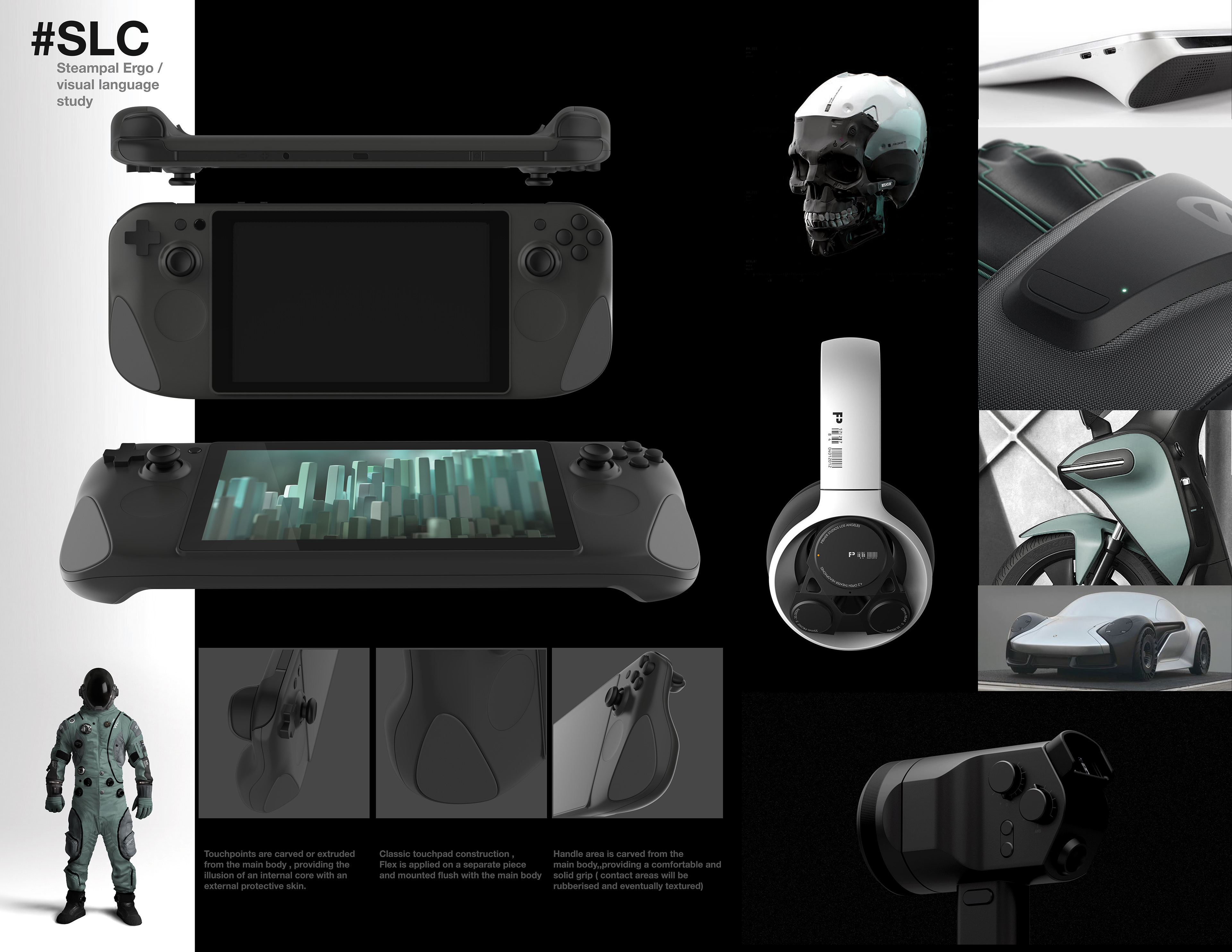 Through materials and colors exploration, we refined the visual presence/ hierarchy of elements and overall message for the Steamdeck to carry on.