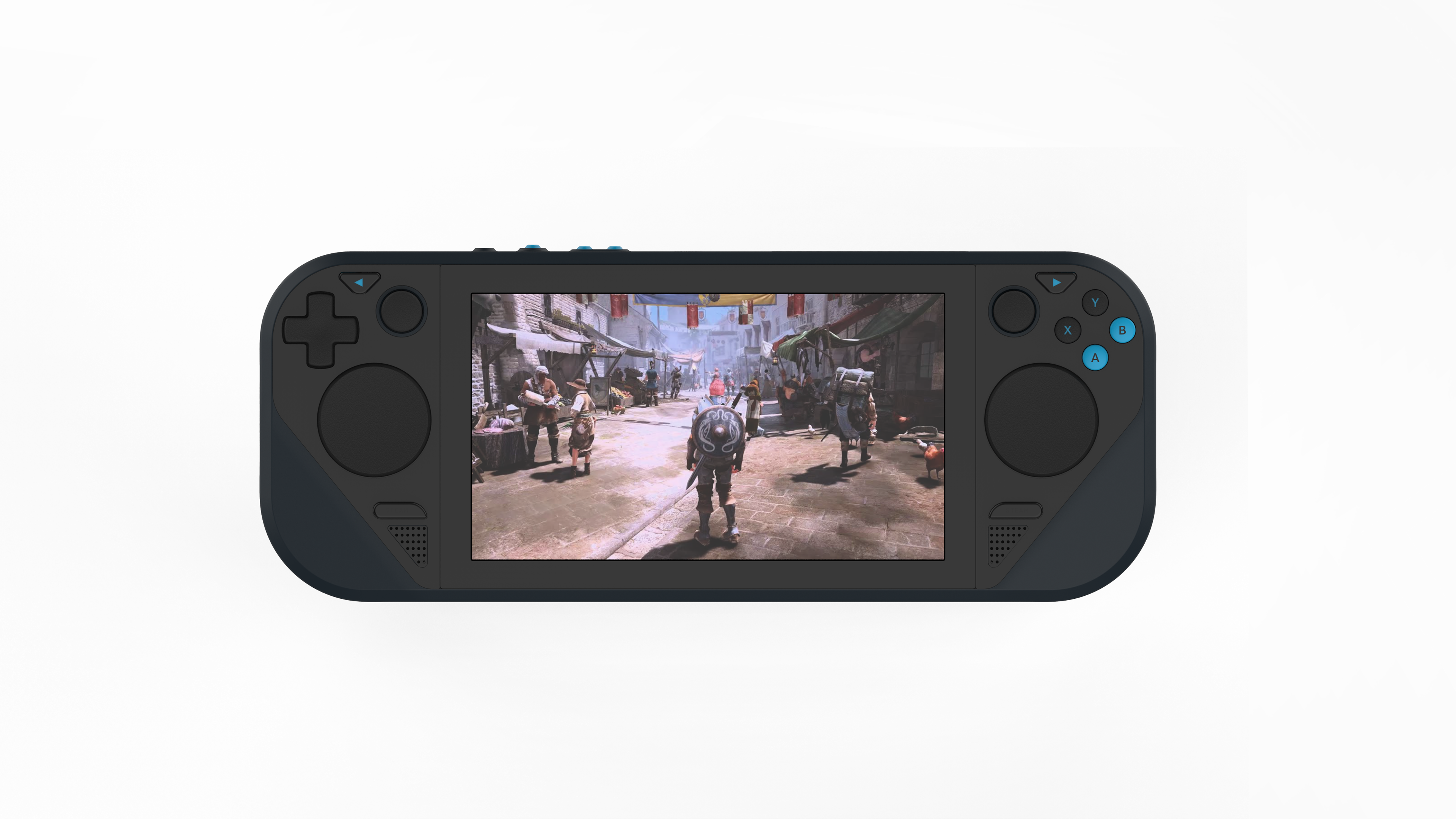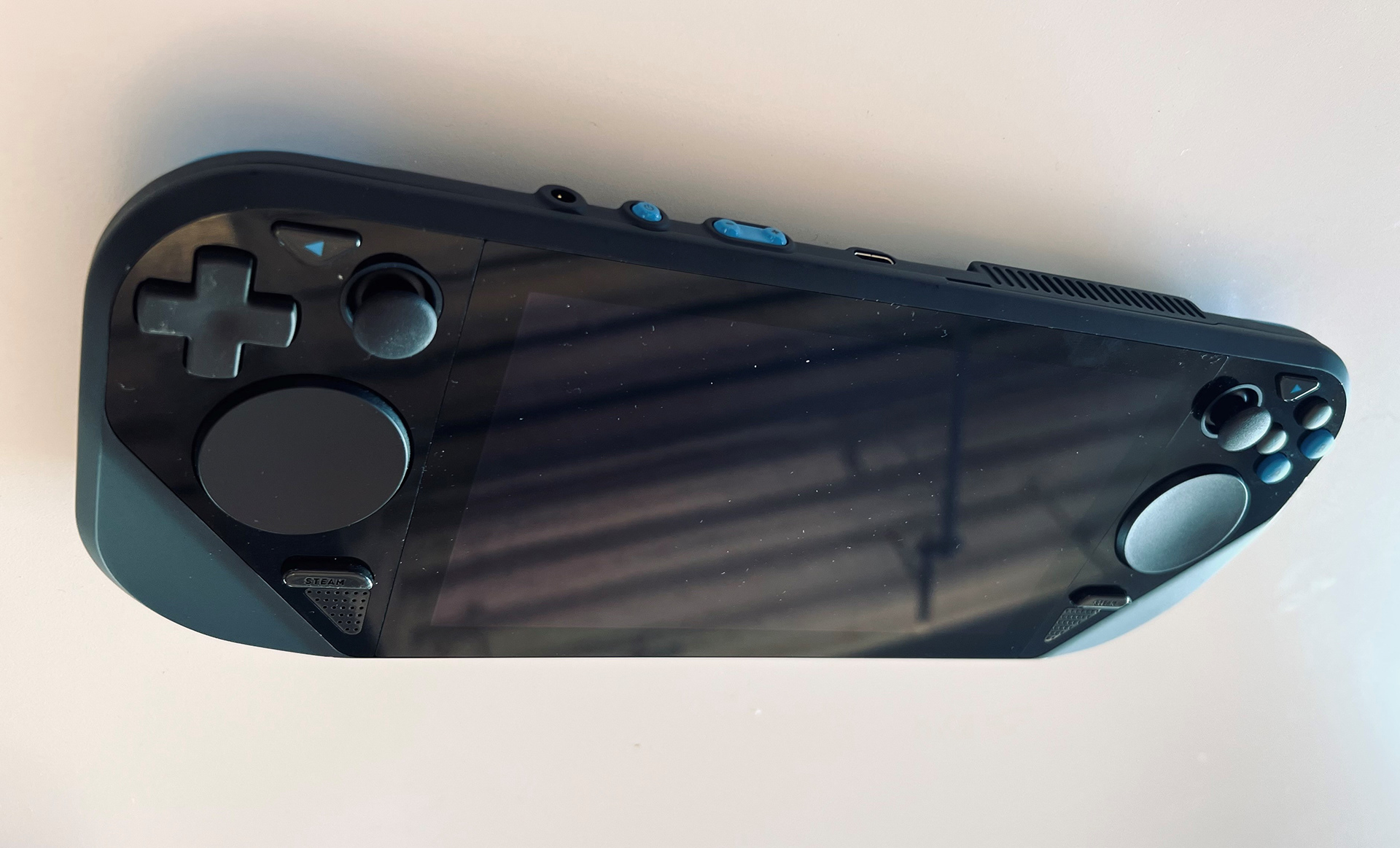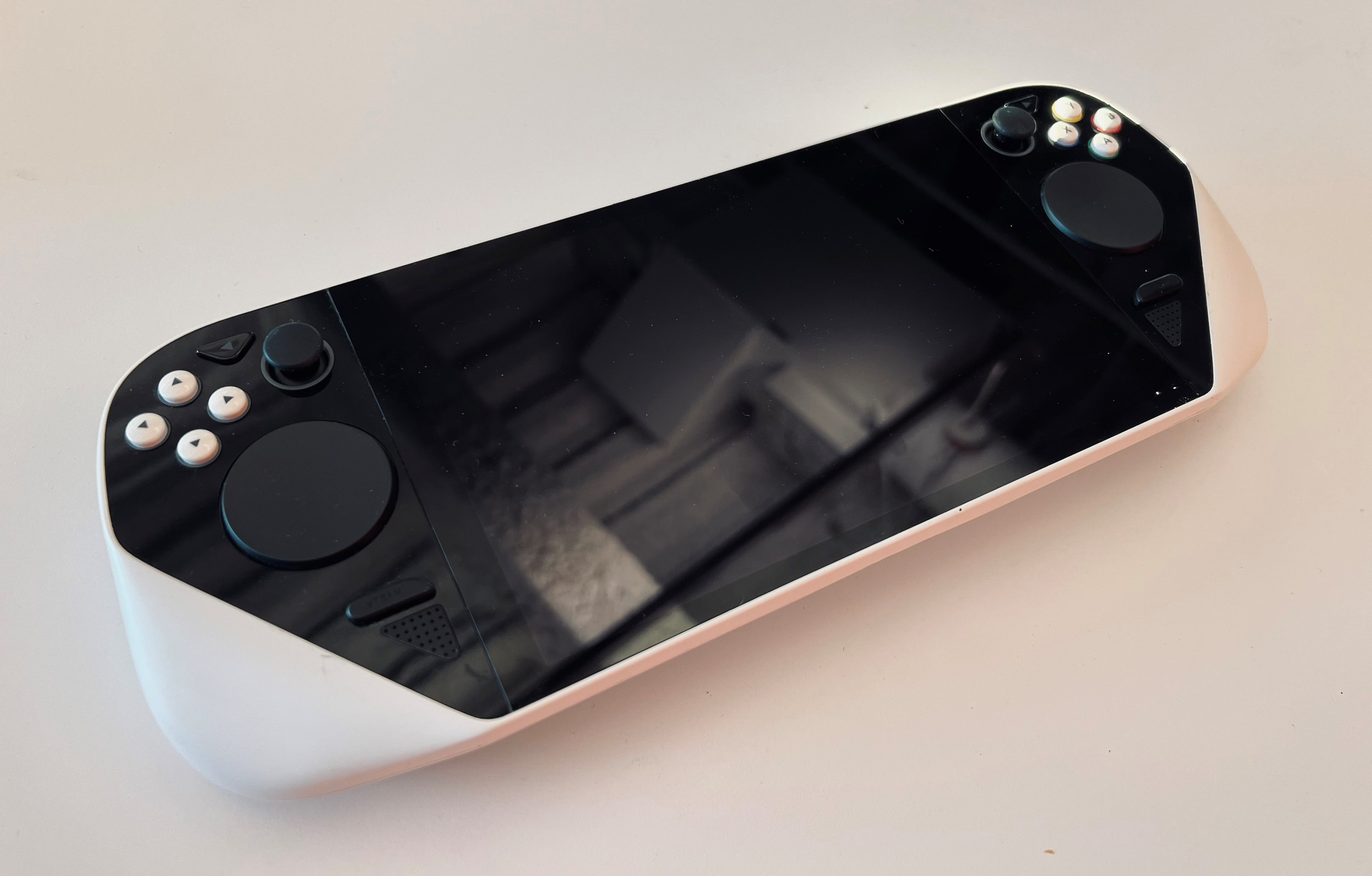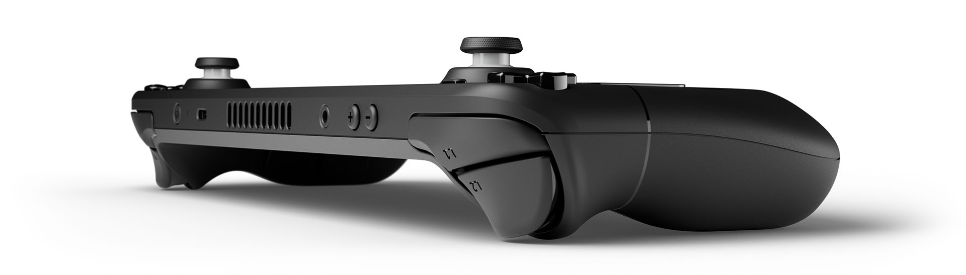 Deck’s thumbsticks are full-size, Inverse thumb-stick volcano for additional clearance from trackpad and ABXY.