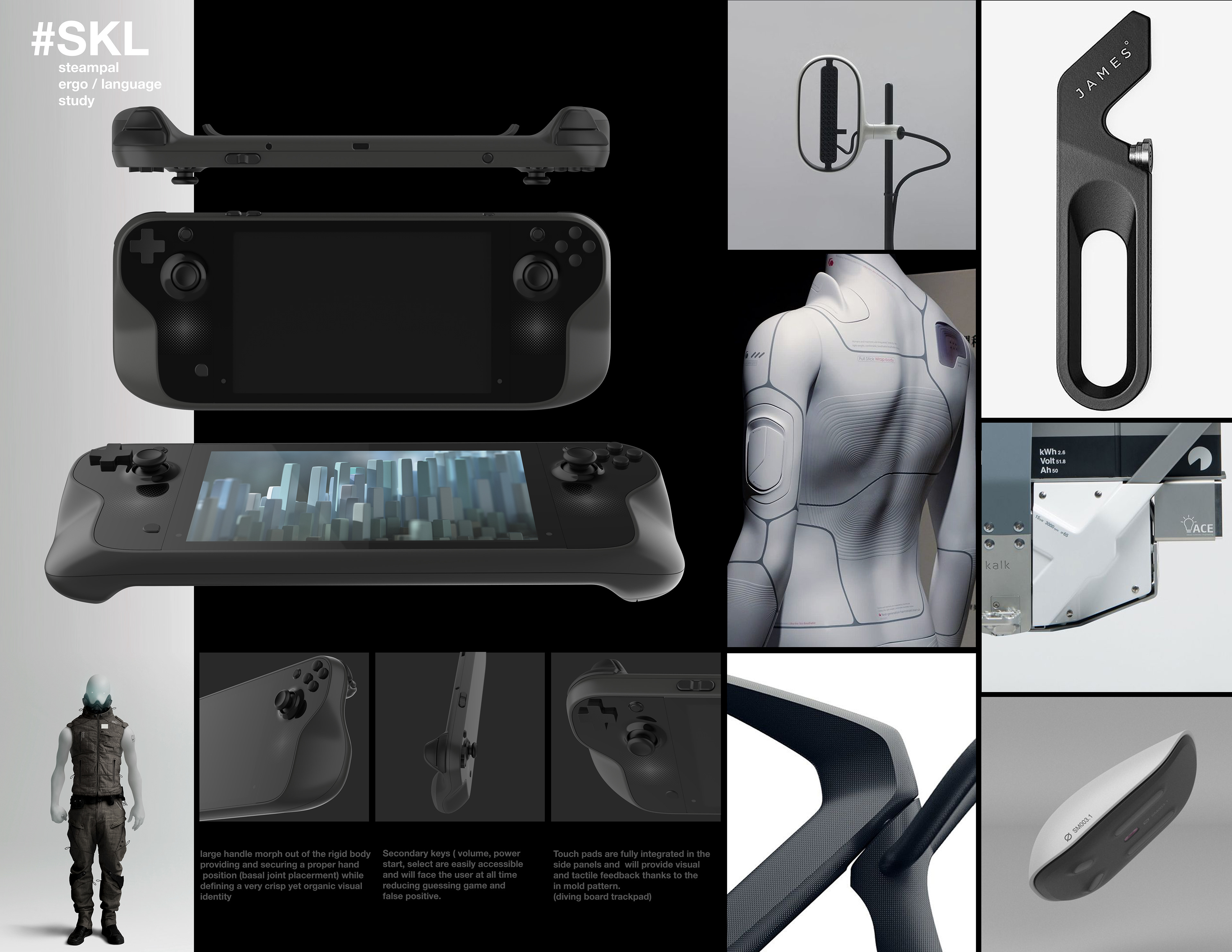 Once we defined a solid set of controls and ergonomic goals, We spent several months establishing an ergonomic baseline for the Deck handles and inputs, independent of design concerns.