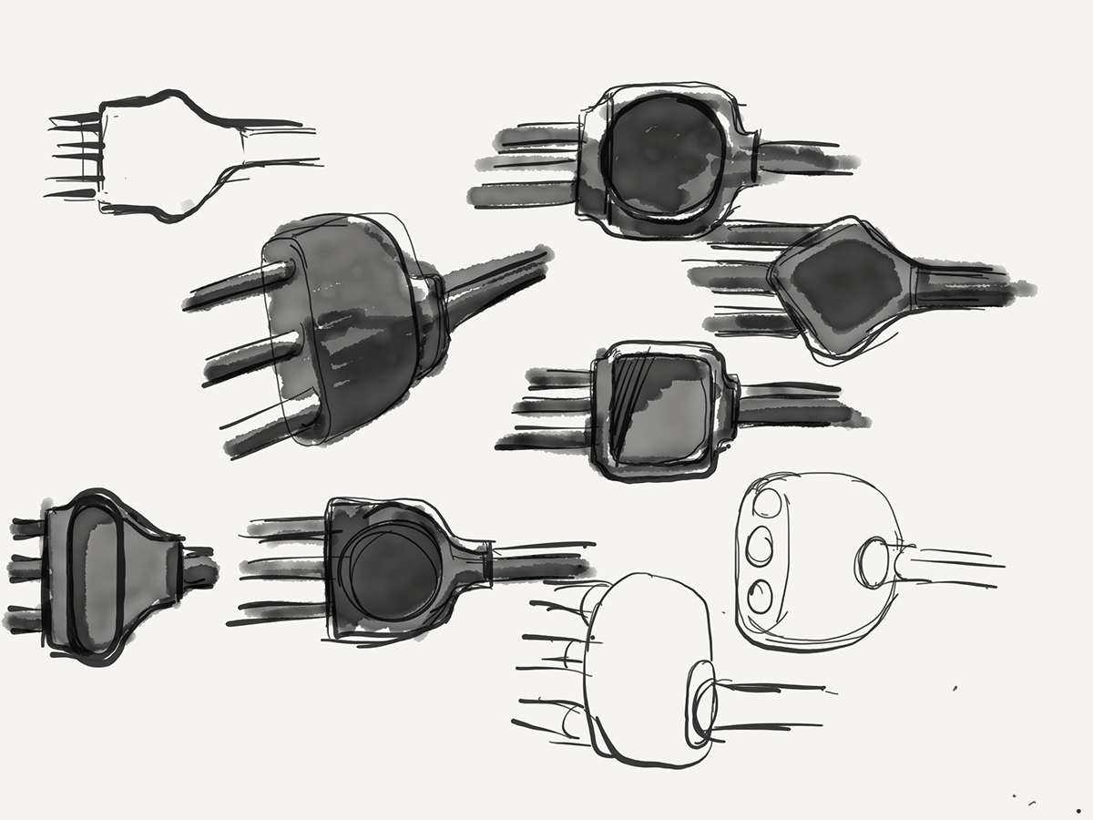 The opportunity to design the cables, tether, and overall accessories design language was a unique way to keep the experience consistent and visually coherent, keeping the experience as intuitive as possible. My goal was to keep the necessary plug as simple as possible while guiding users through form development ( connection continuity) and subtle texture.
